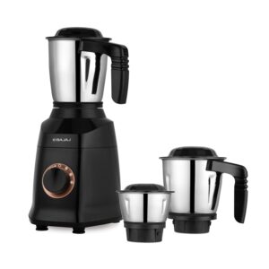 Your search for a utilitarian mixer grinder ends here as you can shop online for the Bajaj Classic Neo Mixer Grinder that will surely impress you with its numerous functional features. It comes with a powerful motor and works effortlessly. It is inclusive of three kinds of jars and functional attachments,making it a must-have for your kitchen. All these jars have excellent capacity. This is provided with two kinds of jars,a blender jar,a multipurpose bowl and a chutney jar. . It has a compact design and can be stored away conveniently when not in use.This Mixer Grinder runs at a voltage supply of 220-240V and consumes 500 watts of power. All the blades that come along with this Mixer Grinder are made of good quality and hardened stainless steel that ensures longevity. Stainless steel is resistant to rusting and corrosion and is sure to last long. Therefore,these blades are also ideal for both wet and dry usage. In addition,the edges of these blades also remain sharp and ensure fast performance during each use.