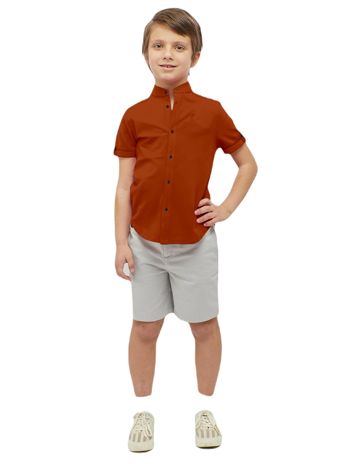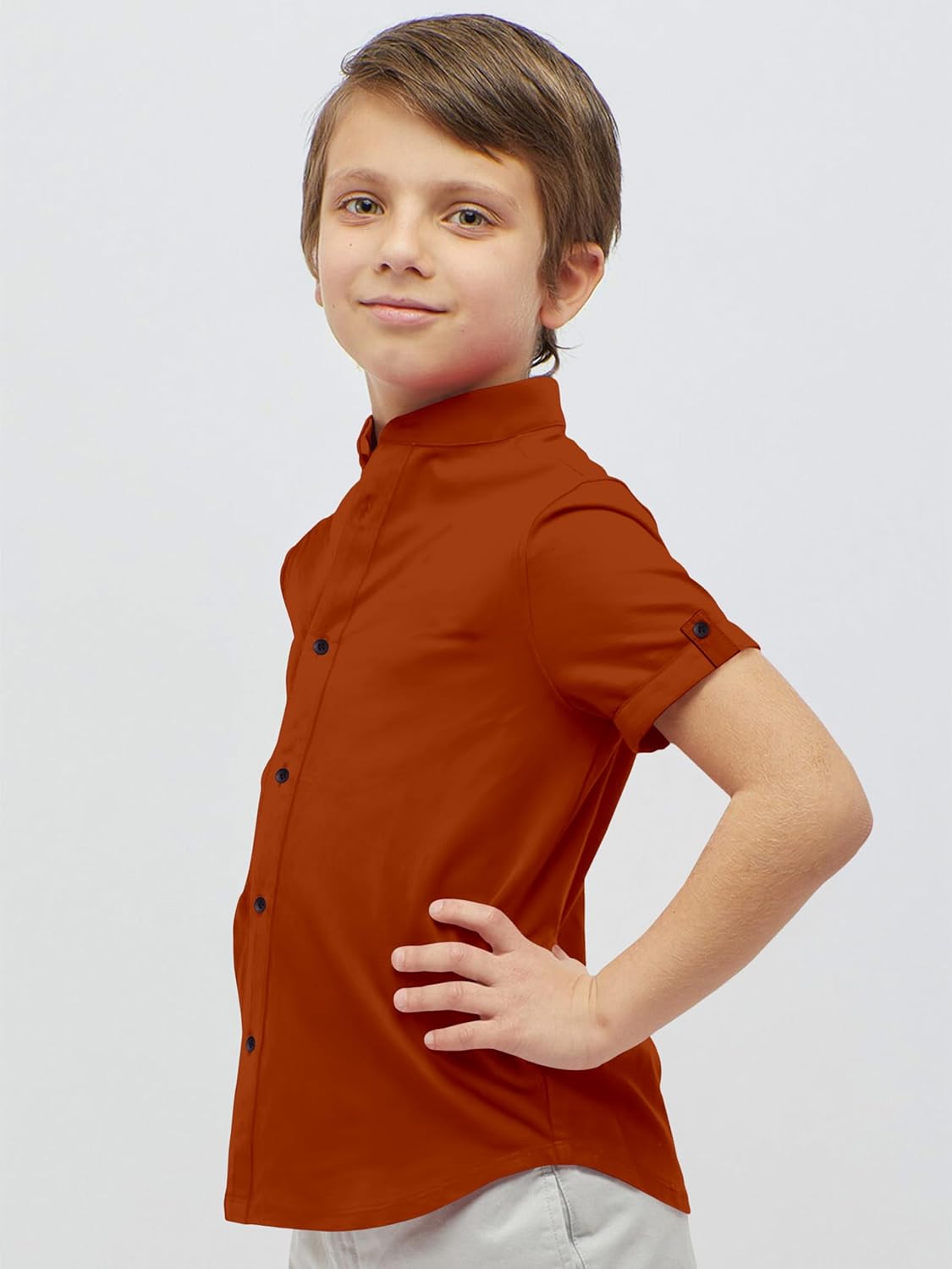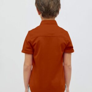 Boys Cotton Blend Mandarin Neck Rust Shirt.
