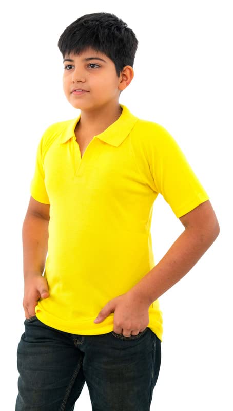 Boys Cotton Half Sleeves Solid Yellow Shirt.