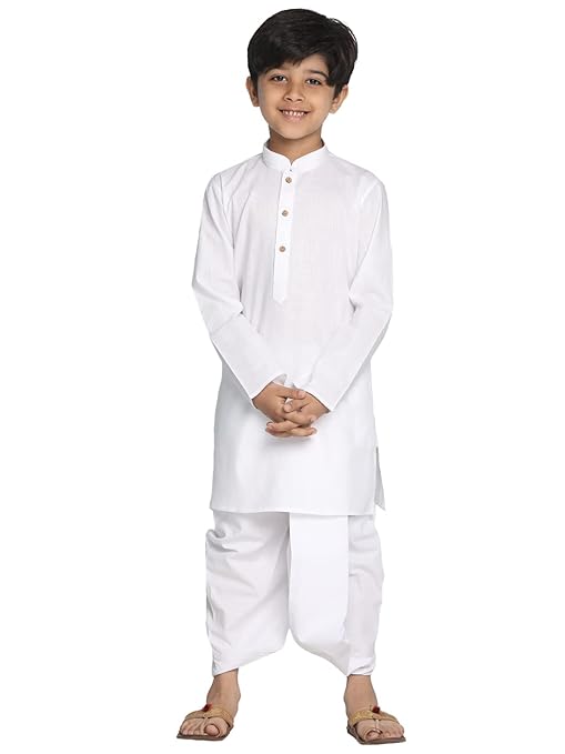 Boys Plain White Kurta and Dhoti Set.