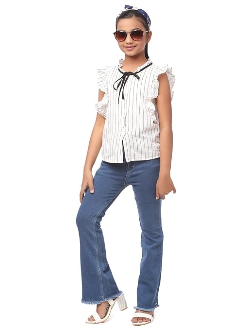 Girls Bell Bottom Blue Jeans.