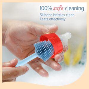 Head of both bottle & Nipple cleaner is made of Highly flexible Non-Toxic Silicone bristles that reach all corners of bottles & accessories ensuring scratch free safe cleaning. Easy Grip 360? rotating brush handle removes stains and harmful bacteria from feeding accessories, baby bottles, bowls, dishes and sippers. Durable silicone bristles attached to sturdy and long lasting core. Can be steam sterilized, BPA-free, durable and to use.