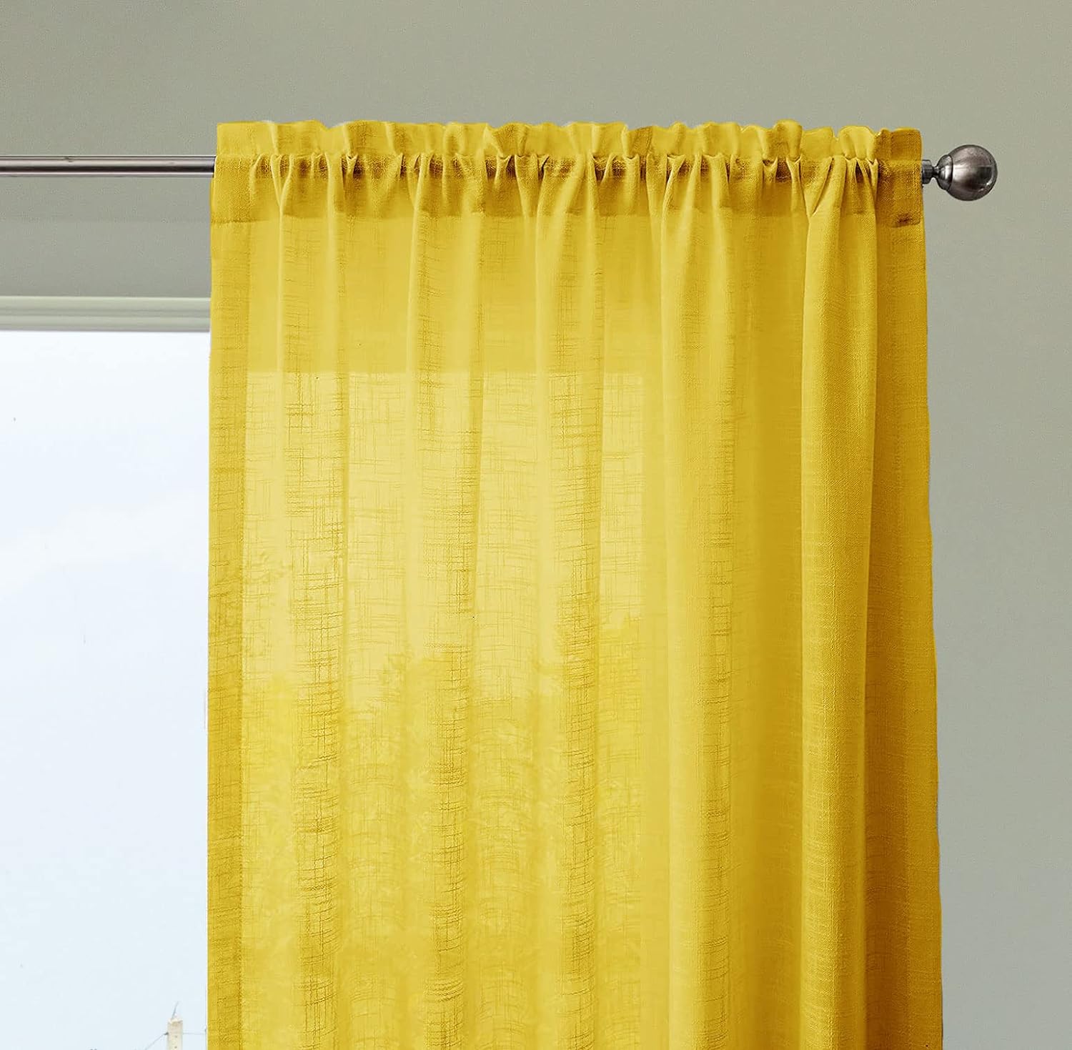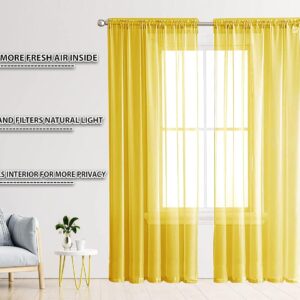 Seasons Sheer Curtains 8 Feet with Rod Pocket Top, Mustard.