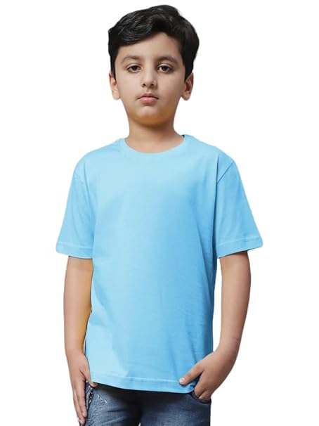 Unisex Boys & Girls Plain Sky Blue T-Shirt.