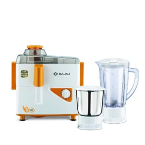 Integrated with flow breakers,this juicer-mixer-grinder?s jars are capable of smoothly grinding ingredients with uniform consistency. Made using pure copper,this juicer-mixer-grinder ensures efficient and long-term performance. This appliance comes with two unbreakable and impact-resistant polycarbonate jars that are strong and durable. Also,as they are transparent,these jars give a clear view of the juicing and grinding action without opening the lid. An overload protection system in this appliance ensures that the motor is safe from overload. Fitted with anti-skid rubber feet,this appliance stays stable and in place even during high-intensity grinding. A cord winder at the base of this appliance lets the user neatly wind the cord for convenient and hassle-free storage. Made using ABS material,this appliance is tough and durable. Also,its high gloss finish adds an elegant touch to the look. This appliance has a 1.5 m long cord with a moulded plug for convenient placement and usage. Put together with detachable parts,this juicer-mixer-grinder can be cleaned with ease.