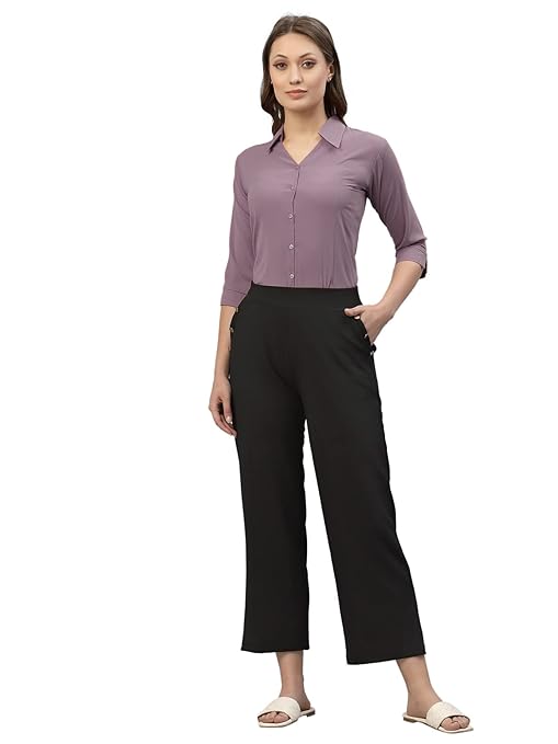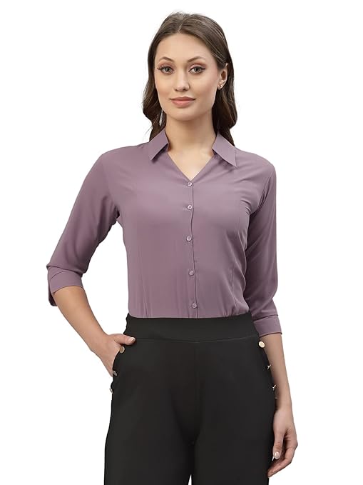 Women Poly Solid Lavender Shirt.